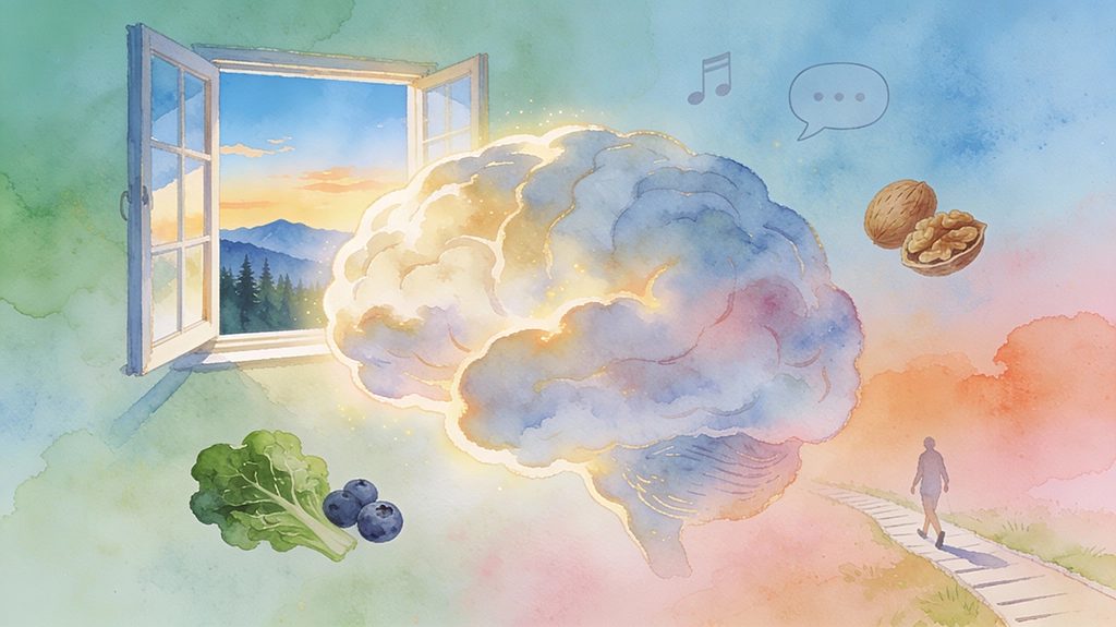 聽力、眼力有損,大腦將面臨更高的退化風險。我們的眼睛、耳朵是接受外界訊息的窗口,窗口壞了,大腦就孤單了!我都用遠眺來保護眼睛,有時候搓熱雙掌溫敷放鬆,刻意練習「深眨眼」,有意識休息,確保淚液均勻滋潤到眼睛。吃的方面,多方攝取含葉黃素(深綠色蔬菜)、花青素(藍莓、紫地瓜)與 Omega-3(核桃、亞麻仁油、紫蘇油)。以及欣賞美好的四季風景,這是我最喜歡的。